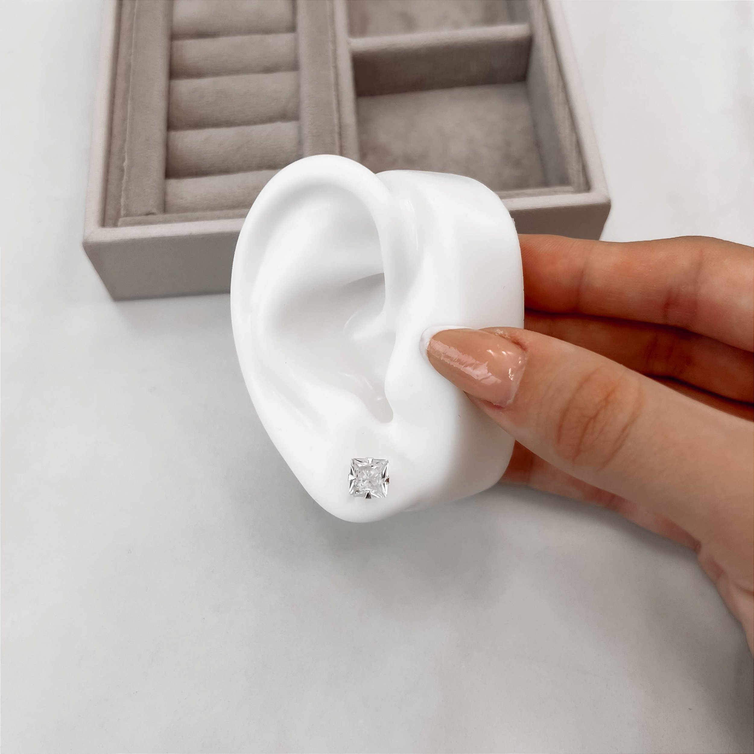 Brinco zircônia quadrada cristal 9mm