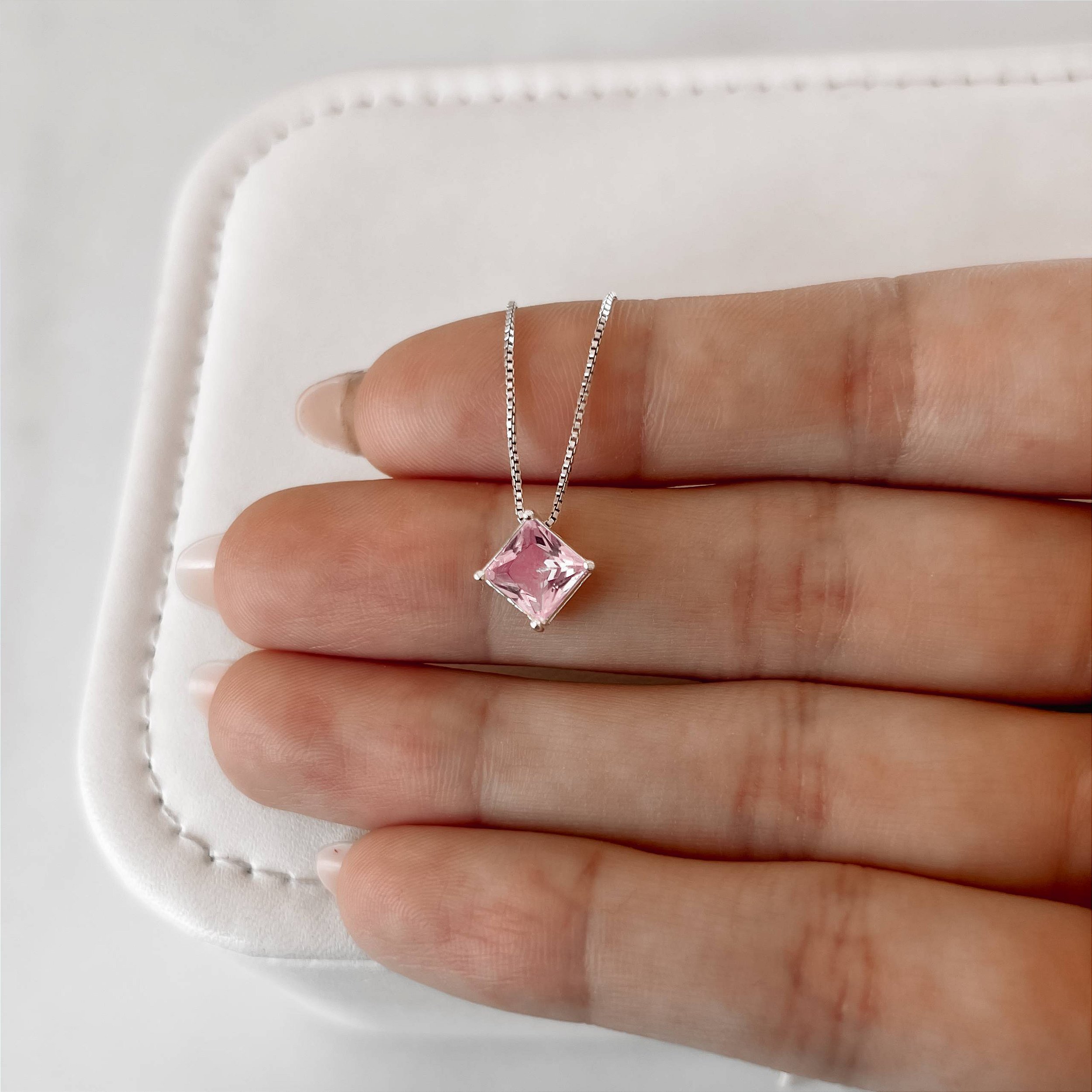 Colar zircônia losango rosa 10mm 45cm