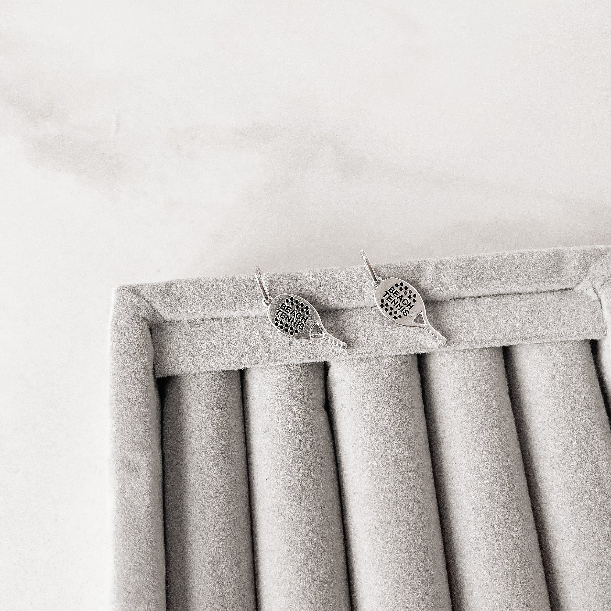 Pingente em prata formato raquete beach tennis 20mm.