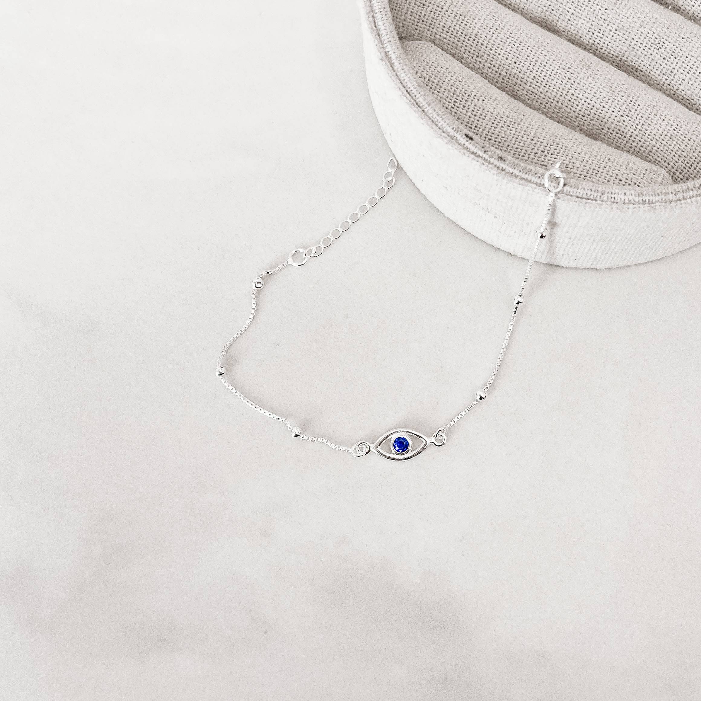 Pulseira entremeios olho grego 12mm com bolas